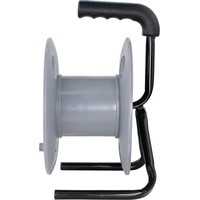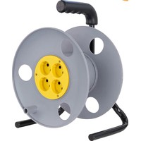 Пластиковая катушка без провода, металлическая тренога, 4 гнезда без заземления.Диаметр катушки: 270 мм.Максимальная вместимость провода ПВС 3х2,5: 60 м.Максимальная вместимость провода КГ 3х2,5: 50 м.