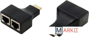 Устройство предназначено для передачи сигнала HDMI с максимальным разрешением 1920x1080 на расстояние до 30 метров через 2 сетевых кабеля.