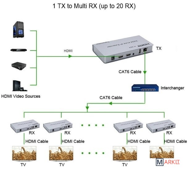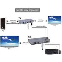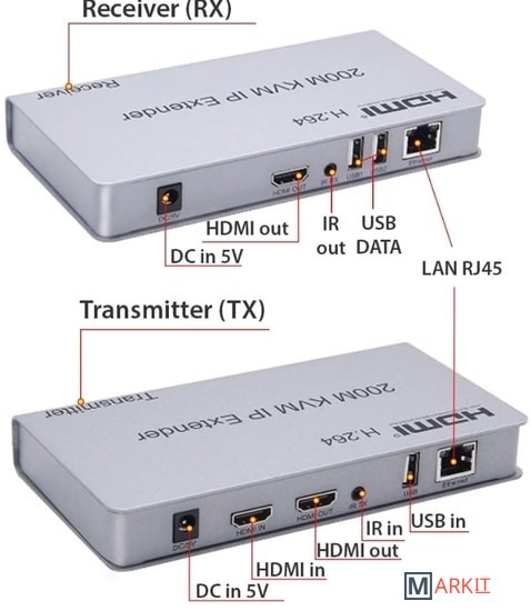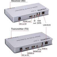Устройство обеспечивает передачу HDMI и USB сигнала, ИК управляющего сигнала по UTP кабелю до 200 метров. Особенность модели: используется TCP/IP-протокол, кодировка сигнала H.264Комплект состоит из передающего (Tx) и принимающего (Rx) блоков. Возможно подключение по сети через неуправляемый коммутатор нескольких приемников к одному передатчику.Передача сигнала осуществляется по одному кабелю Cat-5e или Cat-6 (рекомендуется)