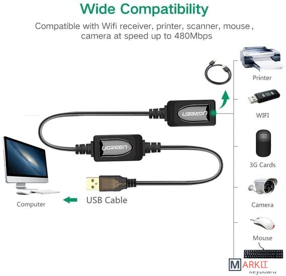 Markit » Кабели, адаптеры, разветвители » Удлинитель Ugreen US121 10323 USB Type-A - USB Type-A (15 м, черный)