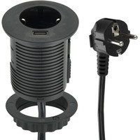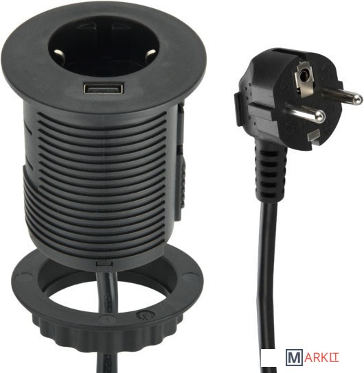 Встраиваемый в столешницу удлинитель с одним разъемом USB с поддержкой протокола быстрой зарядки QuickCharge 2.0.