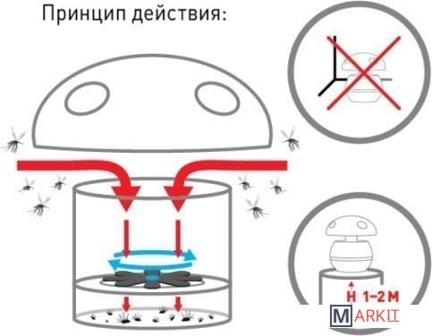 | Тип уничтожителя насекомых | втягивание в ловушку |
