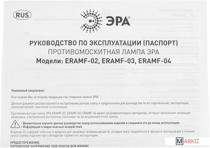 Markit » Уничтожители насекомых, отпугиватели, ловушки » Уничтожитель насекомых ЭРА ERAMF-03
