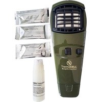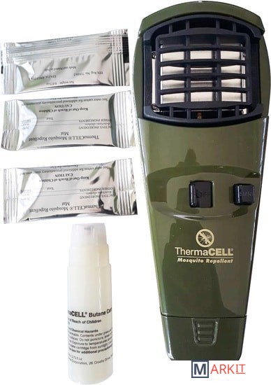 Мобильность этого агрегата позволяет взять его с собой куда угодно: рыбалка, охота, пикник или поход. Площадь защиты от насекомых составит около 20м2, а это позволит с комфортом отдыхать компанией до 4-х человек. В приборе ThermaCELL используется уникальная запатентованная технология распределения в воздухе небольшого количества репеллента. Аппарат работает по тому же принципу, что и обычные фумигаторы, но его не нужно подключать к розетке. Пластина с репелентом нагревается с помощью маленького сменного газового баллона, а не от электричества. Баллончика хватает на 12 часов. К нему также идут 3 пластины, каждая на 4 часа действия. Такой бутановый картридж обеспечивает беспроводной портативный нагрев пластины, пропитанной аллетрином. Это вещество является аналогом натурального инсектицида, содержащегося в цветах хризантемы. Прибор полностью безопасен для алергиков, маленьких детей и животных.