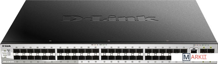 Управляемый стекируемый коммутатор 3 уровня с 48 портами 1000Base-X SFP, 2 портами 10GBase-T и 4 портами 10GBase-X SFP+.
