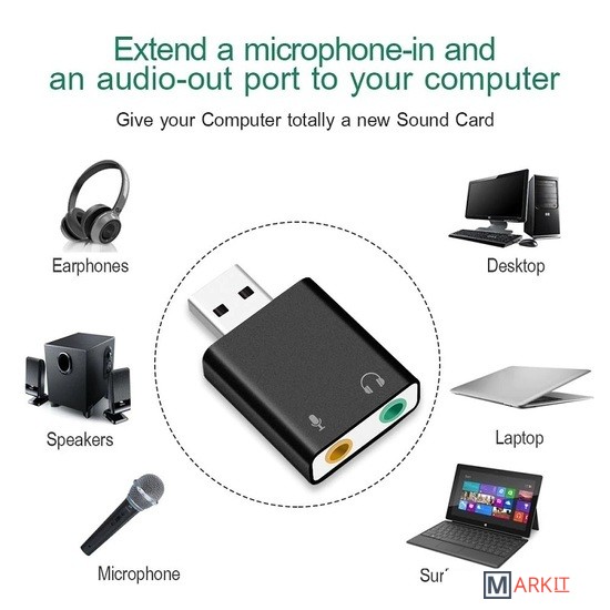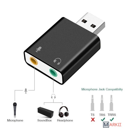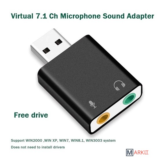 Внешняя звуковая карта USB 3D 2.1/7.1-канальная предназначена для подключения динамиков, колонок, наушников или микрофона через порт USB компьютера или ноутбука. Если у Вас не работает системная звуковая карта, некачественный звук или Вас не устраивает базовая громкость Ваших динамиков или в Вашей технике отсутствует порт jack 3.5mm, либо Вам необходимо подключить гарнитуру с микрофоном или отдельно микрофон, данный адаптер будет отличным решением данной задачи. Не предназначена для телевизора. Не требует установки драйвера.Характеристики:– поддержка колонок или наушников, функция записи микрофона; функция свободного переключения между режимами наушников и динамика;– поддержка файлов формата WAV / MP3 / WMA / MPEG1 (VCD) / MPEG2 SVCD) / AVI / DVD_Audio / DVD_AC3 / DVD_DTS / DiVX.– технология Xear 3D полностью поддерживает функции MS DirectX, EAX1.0 / 2.0, HRTF 3DX;– технология мультиплексирования для достижения 7.1-канального динамического звука;– поддержка трехмерного звука и виртуального 7.1-канальный.– функция микшера;– интерфейс USB2.0, адаптер совместим с интерфейсом USB3.0 и обратно совместим с версией USB1.1. Скорость передачи данных: 12 Мбит/с;– не требуется установки драйвера;– поддержка всех ОС: Windows 2000/XP/Server 2003/VISTA 7/8/10, Linux, Mac OS и др.;– размеры: 30*26*11 мм.Материал: алюминиевый сплав
