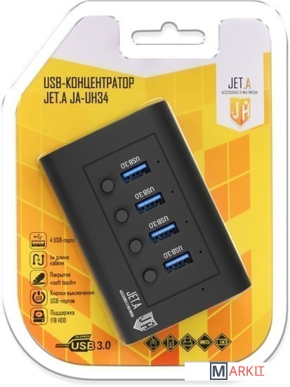 Markit » USB-хабы и док-станции » USB-хаб Jet.A JA-UH34 (черный)