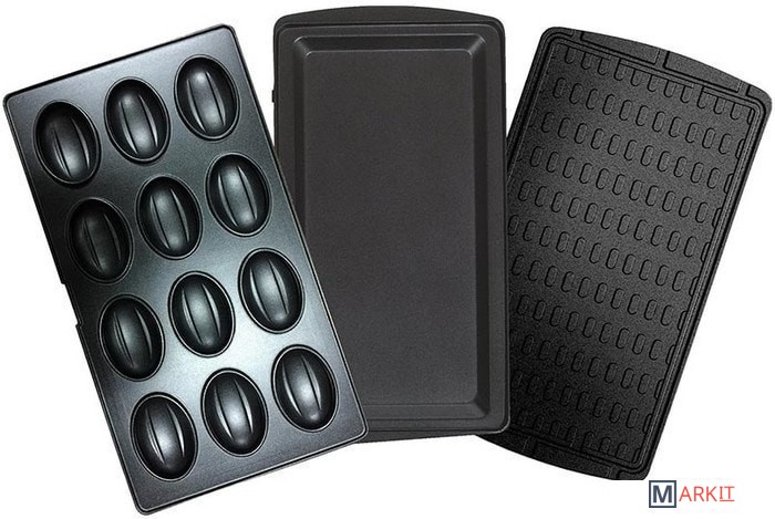 Вафельница - для приготовления тонких вафель.Орешница - для приготовления орешков, мини тарталеток. Пицца-гриль - для приготовления пиццы, пирогов, запеканки, омлета, печенья, различной выпечки, гриль блюд.
