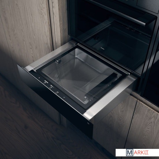 Нажимной механизм открывания.Выдвижной ящик на телескопических направляющих.Объем: 8 литров.Максимальный размер пакета: 250 x 350 мм.Интенсивность откачки воздуха: 4 куб.м/ч.3 уровня вакуума.3 продолжительности запайки для пакетов различной толщины.Сенсорная панель управления.Кнопка включения с подсветкой.Трубка для внешнего вакуумирования.