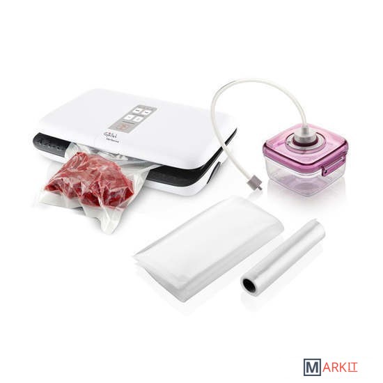 Комплектация Пакеты 25 х 30 см (10 шт.)Фольга длиной 5 м и шириной 25 смВакуумная коробка (объем 700 мл)Шланг