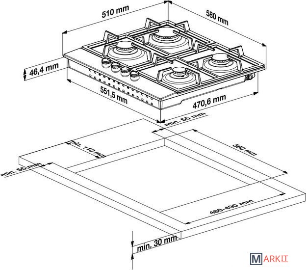 | Индукционные конфорки | ✘ |
