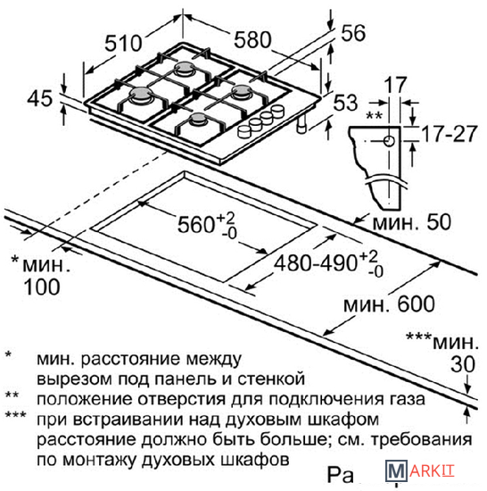 | Размеры ниши для встраивания | |