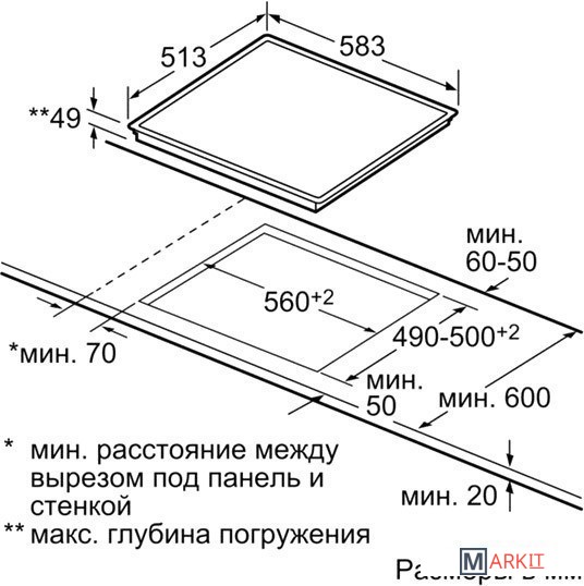 | Размеры ниши для встраивания | |