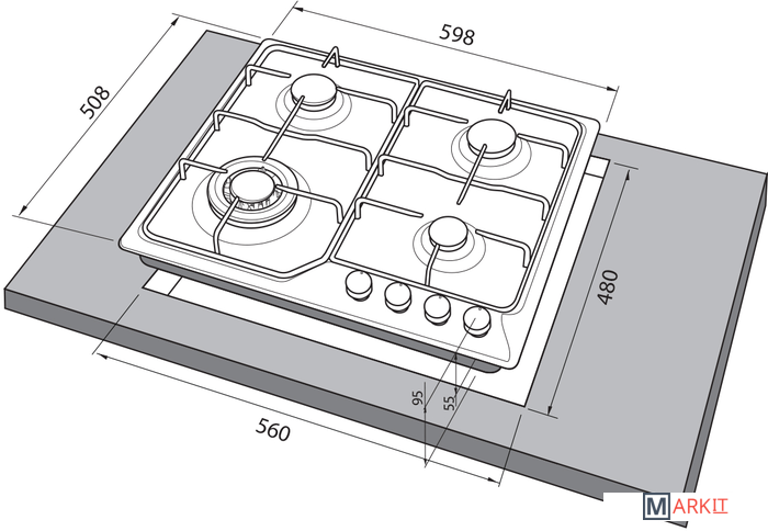 | Количество конфорок | 4 |