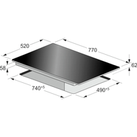 2 объединённых двойных поля: 200 × 400 мм, 3,5 кВт, режим POWER – 4,3 кВт в которые входят ▪ 2 нагревательных поля: 180 мм, 2 кВт, режим POWER – 2,3 кВт. 180 мм, 1,5 кВт, режим POWER – 2 кВт ▪ 1 нагревательное поле: 210 мм, 2 кВт, режим POWER – 2,3 кВт.