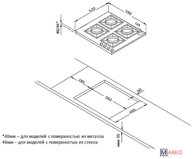 | Размеры ниши для встраивания |