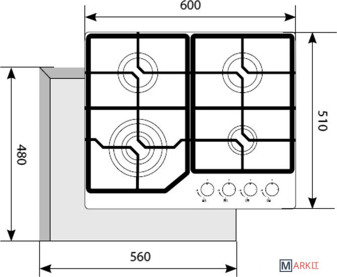 | Количество конфорок | 4 |