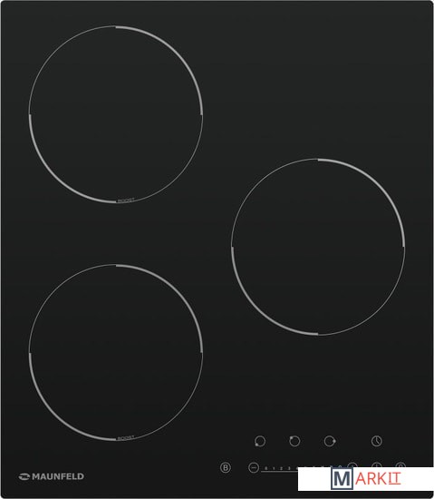 3 конфорки мощностью: 2000/2600 (бустер), 2000, 1500/2000 (бустер) |