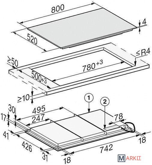 | Овальные/прямоугольные конфорки | 1 |