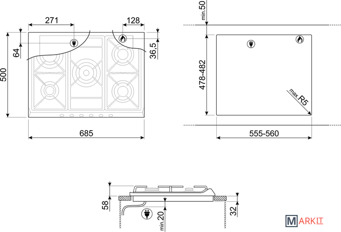 Markit » Варочные панели » Варочная панель Smeg SR275AV2