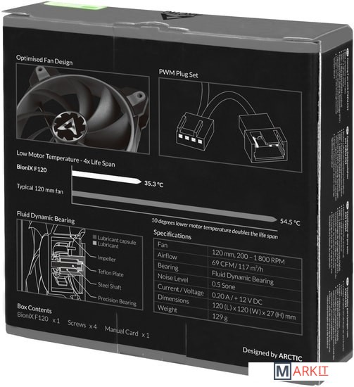 Markit » Системы охлаждения » Вентилятор для корпуса Arctic BioniX F120 (серый)