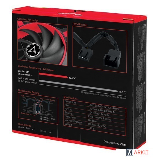 Markit » Системы охлаждения » Вентилятор для корпуса Arctic BioniX F140 (красный)