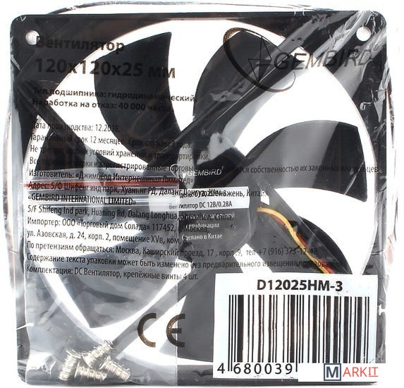 Markit » Системы охлаждения » Вентилятор для корпуса Gembird D12025HM-3