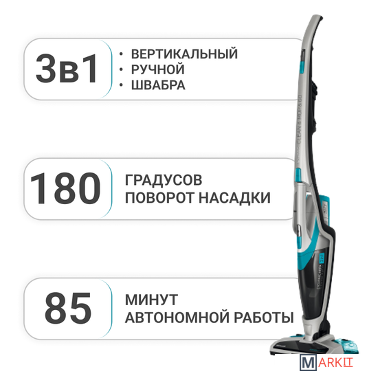 Беспроводной вертикальный пылесос «три в одном», сo шваброй, со съемной ручной частью.Полная свобода движения без кабеля питания.Легкий, тихий и простой в использовании пылесос предлагает быстрое и простое решение для ежедневной уборки всех типов поверхностей, включая уборку полов с твердым покрытием.