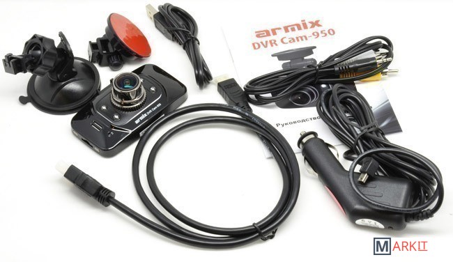 Адаптер питания от прикуривателя (провод 3м)Два кронштейна для крепления на лобовое стекло:1)С двухсторонней липкой лентой (3M скотч)2)С резиновой присоскойUSB-кабельAV-кабельHDMI-кабельРусская инструкция по эксплуатации.