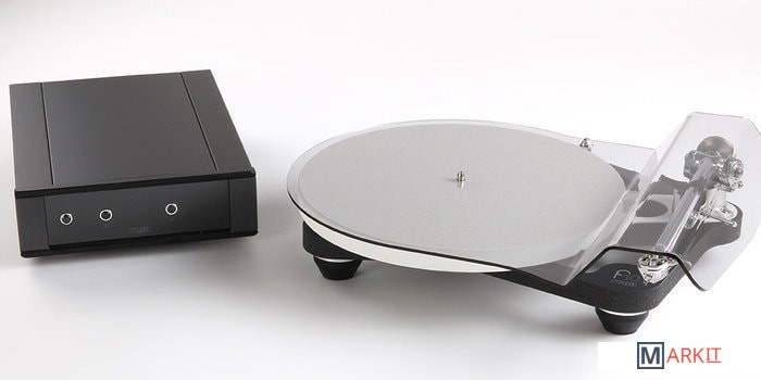 На фото проигрыватель изображен с картриджем Apheta 3.Применение пассика, изготовленного из специальной резины по запатентованной технологии, обеспечило отличную развязку диска, а его вращение стало еще более стабильным и точным, полностью свободным от вибраций. Кроме того, проигрыватель оснащен тонармом RB3000, с облегченным и очень точно работающим механизмом компенсации скатывающей силы. В проигрывателе Rega Planar 10, впервые в истории данной компании, верхняя плита изготовлена из керамики, а нижняя из фенольной смолы, за счет чего удалось получить исключительную жесткость всей конструкции, а также наилучшую механическую развязку между опорным диском и тонармом. В то же время само шасси изготовлено из полиуретана Tancast 8, применяемого в аэрокосмической индустрии, и обладает очень малым весом. Проигрыватель комплектуется новым фирменным электронным стабилизатором скорости вращения диска на базе DSP, выполненном в металлическом корпусе.