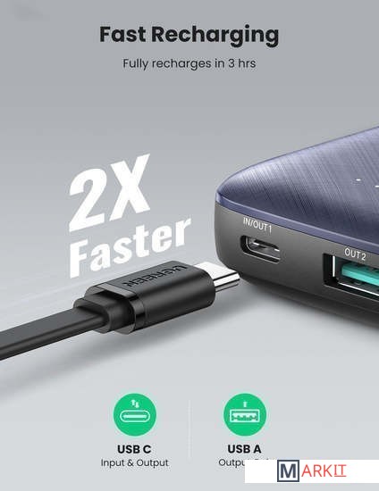 Markit » Портативные зарядные устройства » Внешний аккумулятор Ugreen PB178 80749