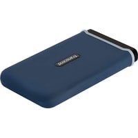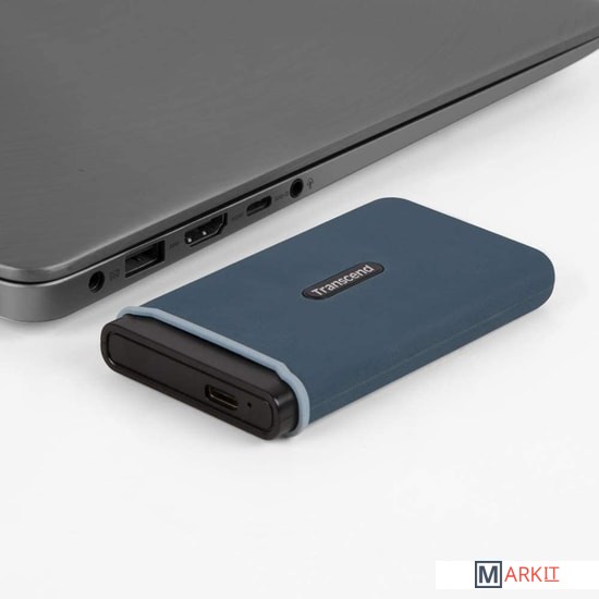 Накопитель ESD370C помещен в стильный силиконовый корпус темно-синего цвета, который обеспечивает защиту и ударопрочность этого устройства. Благодаря наличию системы защиты от падения, соответствующей требованиям стандартного теста на падение армии США, вы можете быть уверены в безопасности информации, которая хранится на накопителе. Чрезвычайно компактный и портативный, ESD370C с легкостью помещается на ладони или в кармане, что делает его удобным аксессуаром для любого путешествия.