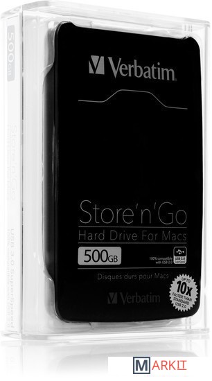 Markit » Внешние накопители (HDD и SSD) » Внешний накопитель Verbatim Store ‘n’ Go для Mac: USB 3.0 500GB Black (53040)