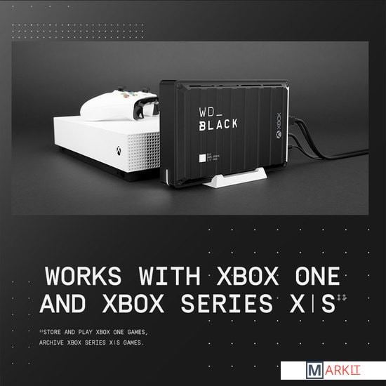 Благодаря накопителю WD Black D10 Game Drive вы откроете новые возможности вашего ПК или игровой приставки и получите конкурентное преимущество, необходимое для победы в игре. Увеличив пространство для хранения на 8 ТБ, вы сможете создать коллекцию из 200 игр или сохранять записи хода игры, которые напомнят вам о любимых моментах. Накопитель WD Black D10 Game Drive со скоростью вращения 7200 об/мин и активным охлаждением обеспечивает скорость передачи данных до 250 МБ/с для игры на высокой скорости, чтобы вы могли иметь полную свободу и играть без ограничений.
