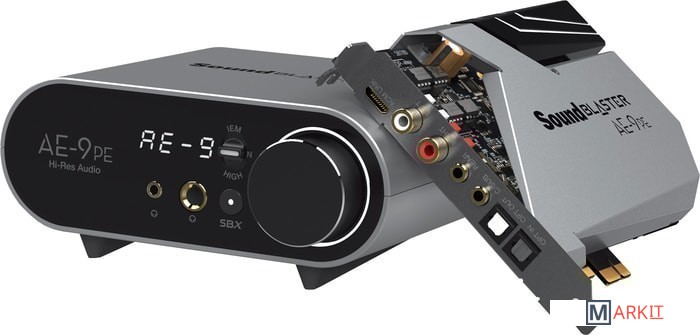 Внимание! Данная модель Sound Blaster AE-9PE пока не совместима с программой Sound Blaster Command. Для корректной настройки устройства обращайтесь на страницу поддержки производителя creative.com/support/SBAE9PE.Основным компонентом Sound Blaster AE-9PE является ЦАП класса ESS SABRE 9038 с поддержкой воспроизведения звука высокого разрешения. Он обеспечивает сверхвысокий динамический диапазон 129 дБ, поддерживает воспроизведение звука 32 бит/384 кГц в форматах PCM и DSD64 и имеет невероятно низкий коэффициент нелинейных искажений -120 дБ (0,0001 %).Звуковая карта Sound Blaster AE-9PE оснащена полностью дискретным двойным усилителем Xamp для наушников, который усиливает каждый аудиоканал по-отдельности, что позволяет добиться детализации звука для каждого наушника без потерь качества независимо от требований пользователя. Большинство мощных функций Sound Blaster AE-9PE, таких как усилитель Xamp, поддерживаются модулем регулировки звука, который устанавливается на столе. Модуль регулировки звука также поддерживает динамические/конденсаторные микрофоны с фантомным питанием, идеально подходящие для профессиональных создателей контента и стримеров.Модуль регулировки звука позволяет вам быстро изменить настройки аудио. Большая многофункциональная ручка регулировки позволяет контролировать громкость и переключаться между наушниками и динамиками. Кнопка SBX позволяет пользователям включать и выключать обработку звука Sound Blaster, а с помощью большого светодиодного дисплея удобно считывать громкость наушников и динамиков.