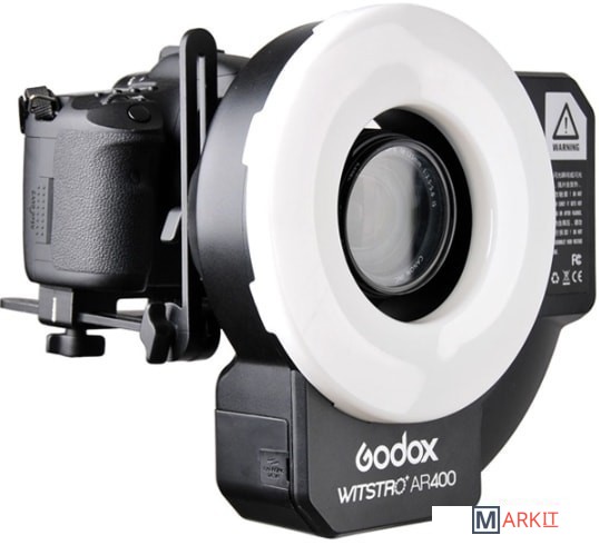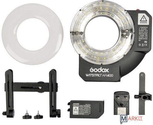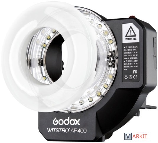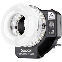 AR400 имеет кольцевую импульсную головку, обеспечивающую бестеневое освещение; как видео LED осветитель AR400 оснащена светодиодными лампами с возможностью настраивать яркость освещения, тем самым обеспечивая стабильный источник света для съемки; как автономная вспышка, AR400 имеет небольшой вес и удобство в переноске, что удовлетворяет требованиях наружной фотографии.