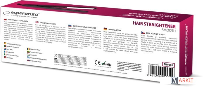 Markit » Плойки, стайлеры, щипцы » Выпрямитель Esperanza Smooth EBP001