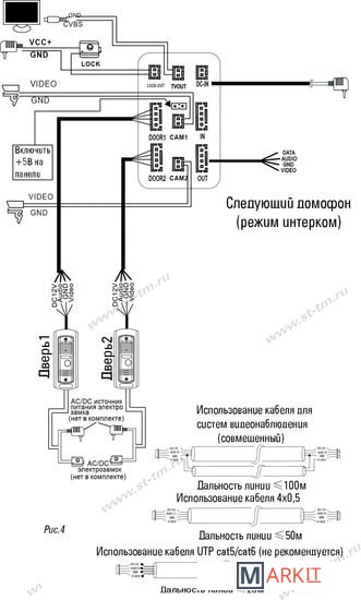 | Подключение вызывных панелей | 4-проводное |