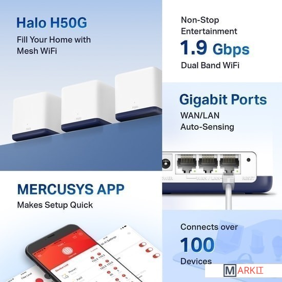 Markit » Беспроводные маршрутизаторы » Wi-Fi система Mercusys Halo H50G (2 шт)