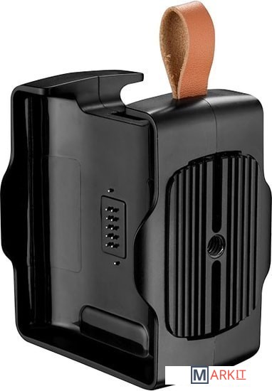 Обладает двумя разъемами для батарей и возможностью их горячей замены. Обеспечивает емкость 57 Вт/ч, что равно 3 емкостям стандартного аккумулятора Sony, 4 емкостям аккумулятора Canon или 5 емкостям аккумулятора iPhone. Оснащена выходным разъемом USB-A и универсальным разъемом USB-C, который можно использовать и на вход, и на выход - можно зарядить любое портативное устройство, от камеры до планшета, ноутбука и, конечно, моторизированной головы.
