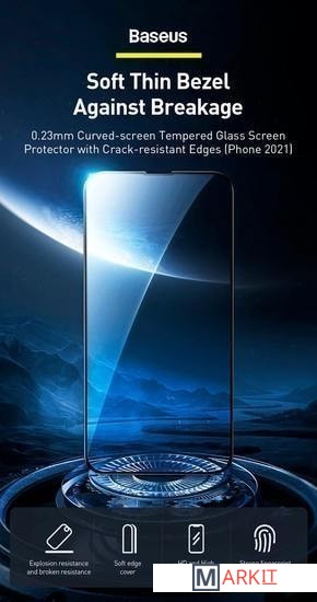 Markit » Защитные стекла и пленки » Защитное стекло Baseus Curved-Screen tempered для iPhone 13 Mini