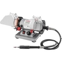 | Комплект поставки | Точильный круг 2 шт., гибкий вал, угольные щетки (запасной комплект), ключ рожковый, ключ-фиксатор г-образный, прозрачный защитный экран с крепежом, рабочая площадка с креплением, насадка гравировальная |