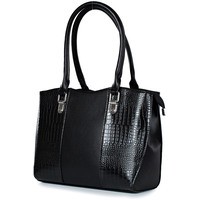 Стильная и вместительная сумка полужесткой конструкции. Удобные ручки позволяют носить сумку на сгибе локтя и в руках. Декорирована комбинацией различных цветов материалов на передней стенки, а также металлическими держателями, подвеской. В комплекте есть съемный плечевой ремень.